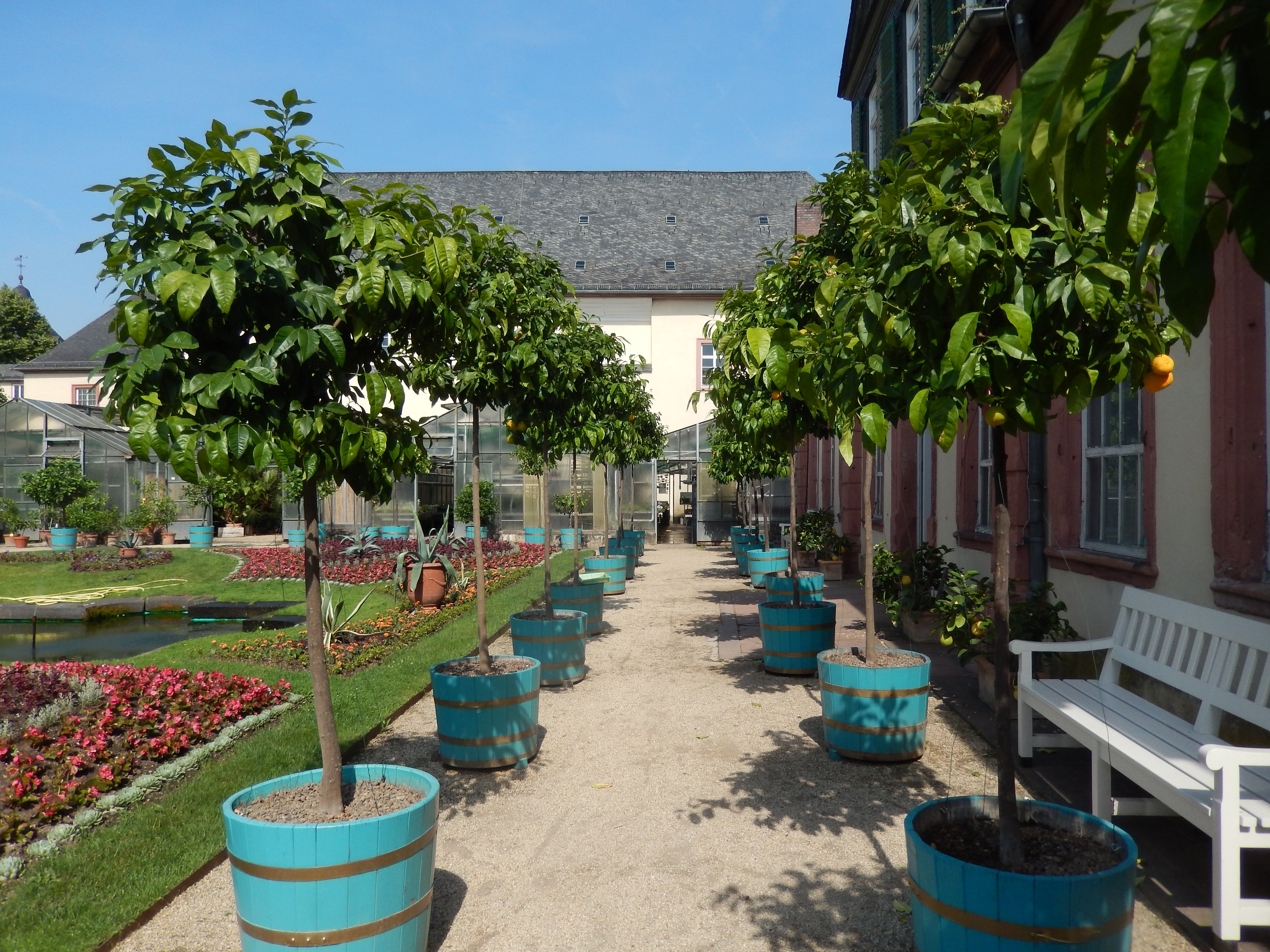 PV: Tja, trotz Klimawandel handeln wir da noch immer „old school“. Wenn auch Oleander, Palmen und Feigen bereits Ende April ins Freie kommen, genießen unsere Citrus ihr Bleiberecht in der Orangerie bis nach den Eisheiligen am 15. Mai. Sollte dann noch einmal Frost angesagt sein, reicht das Abdecken der Pflanzen mit einem Vlies. Bei den Hochstämmen ist die Gefahr nicht so hoch, da es sich in den Fällen meist um leichten Bodenfrost handelt.