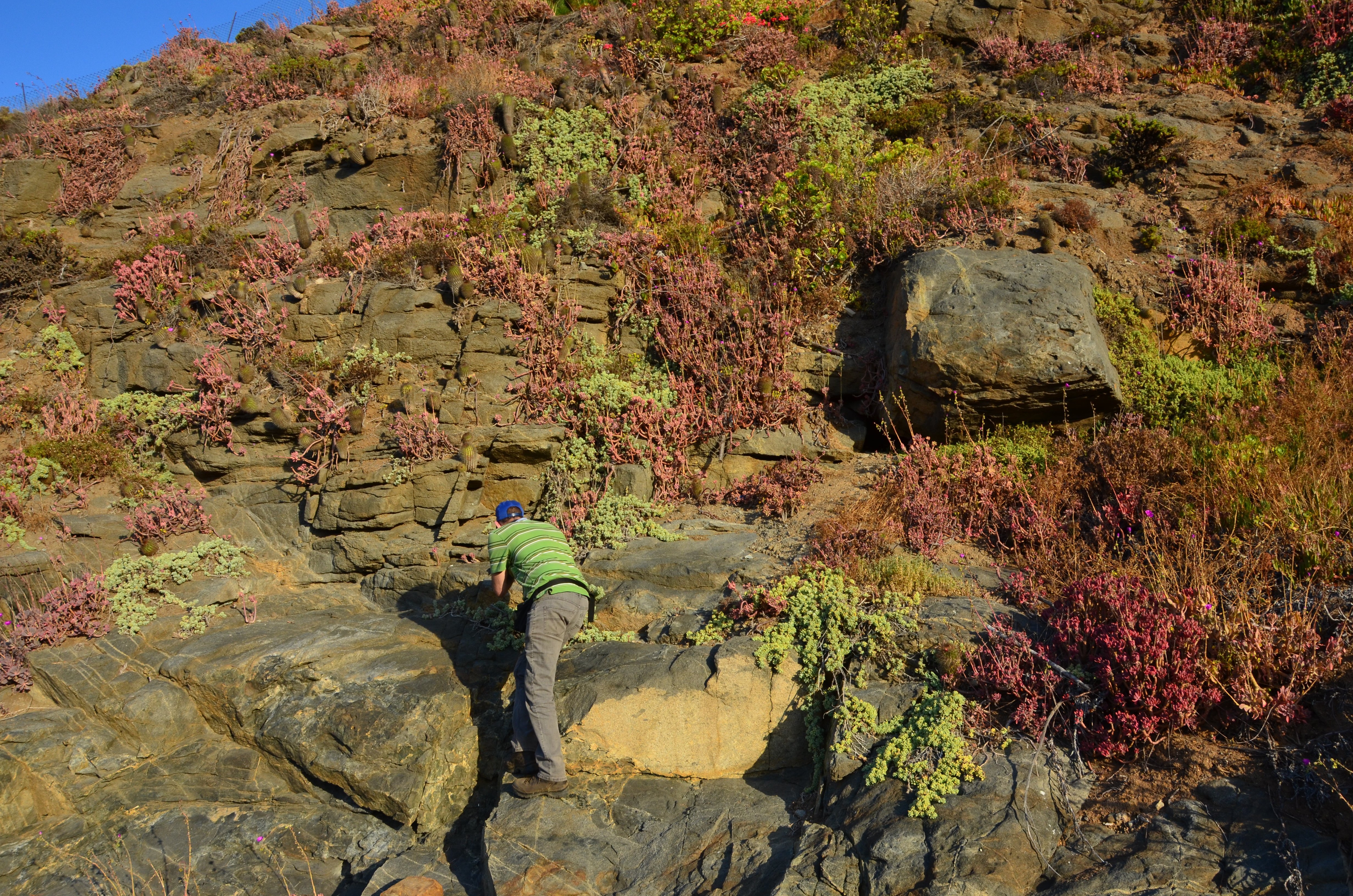 Auf Sven Nürnberger wurde ich von meiner Lektorin Ruthild aufmerksam gemacht. Sie berichtete mir von dem im Palmengarten Frankfurt angestellten Pflanzen-Reisenden und sofort schossen mir Gedanken von wilden Abenteuern in unberührter Natur, weitab von den Touristenströmen, und aufklärerischem Gedankengut à la Alexander von Humboldt durch den Kopf. Bisher war ich noch nie jemandem begegnet, der den Schritt aus dem Garten hinausging, um mehr oder weniger bekannte Gartenpflanzen und Pflanzenfamilien am Naturstandort aufzusuchen. Von grünem Blut war bei Sven also eindeutig auszugehen. Nach Vorgespräch und Interviewtermin wird mir das Ausmaß seiner großen Begeisterung für Pflanzen und ihre Umwelt bewusst. Neben seiner Arbeit im Palmengarten besitzt er – nur noch – zwei eigene Gärten, sowie – nur noch – einen Pflanzenbalkon, auf dem er sich ganz gezielt einzelnen Pflanzen widmen kann. Seine Leidenschaft für Pflanzen wurde ihm von seinen Eltern in die Wiege gelegt und so bezeichnet er seine Reisen als eine Erfüllung. Seine Art, von diesen zu berichten, wirkt bedacht und voller Bewunderung für den Erfindungsreichtum der Natur. Nach zahlreichen Exkursionen in die Karibik und auf die Falklandinseln 2007, erfüllte er sich im Dezember 2017 seinen Traum, für drei Wochen gemeinsam mit Prof. Dr. Wolfram Kircher, Cristóbal Elgueta Marinovic und Klaus Oetjen das mediterrane Chile und verschiedene Vegetationstypen Patagoniens zu bereisen.